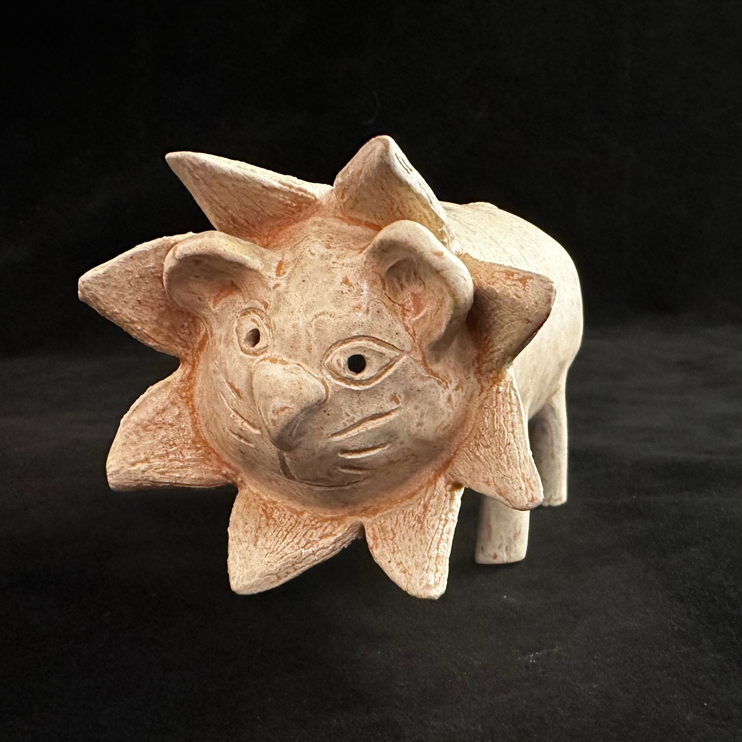 Stoneware lion whistle, 5" nose to tail